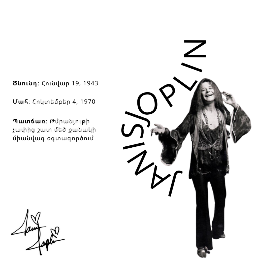 «Ակումբ 27» – ի մասին լսե՞լ եք։ Այսպես են սովորաբար անվանում այն արտիստներին, ովքեր կյանքից հեռացան 27 տարեկանում, երբեմն շատ տարորինակ, կամ առ այսօր չճշտված հանգամանքներում։