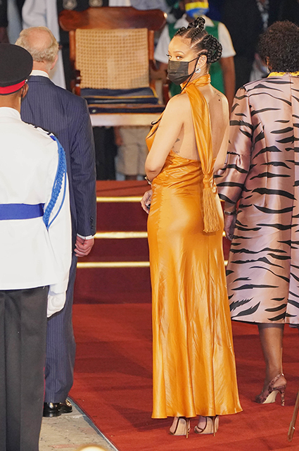 Երգչուհին ընտրել էր նարնջագույն Bottega Veneta զգեստ՝ բաց մեջքով։ Սակայն ոչ բոլորին է դուր եկել երգչուհու նորաձև ընտրությունը՝ շատերը նման լուքն այս արարաղության համար անտեղի են անվանել։ Մասնավորապես համացանցում ակտիվորեն քննարկվում էր այն, որ Ռիհաննան կրծկալ չէր կրում։