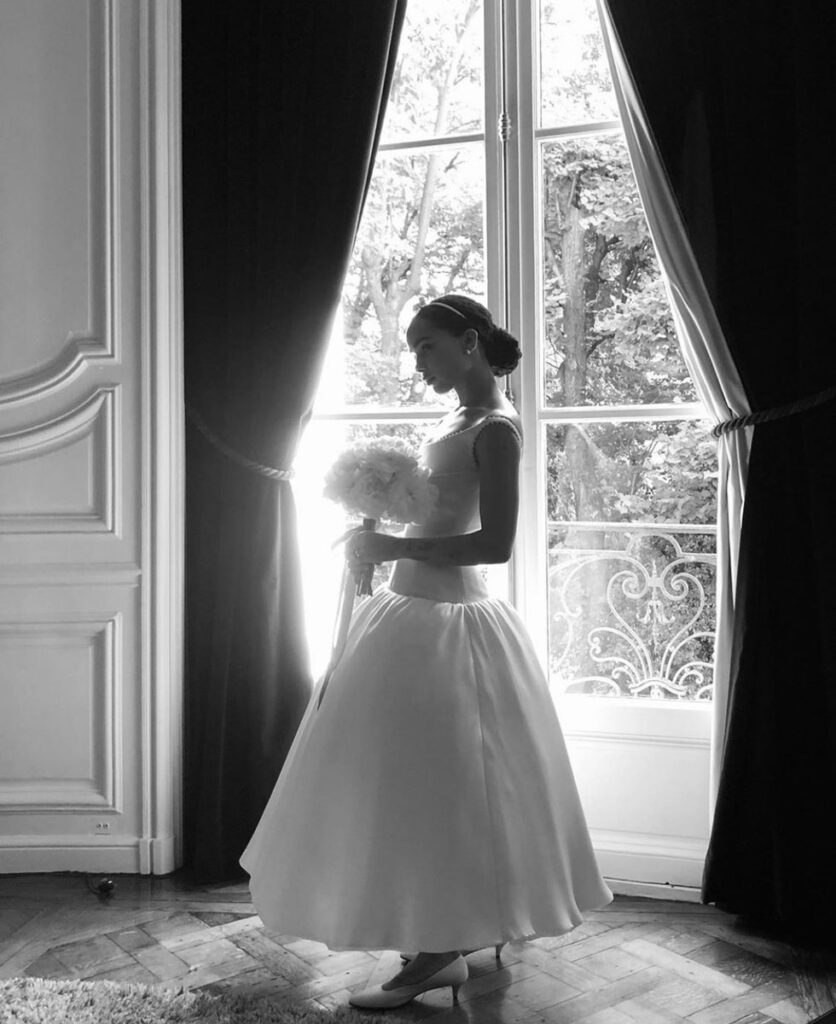 Հարսնացուն որոշեց հրաժարվել ավանդական հարսանյաց զգեստից՝ փոխարենը ընտրելով Yves Saint Laurent-ի սպիտակ կիսաշրջազգեստը: