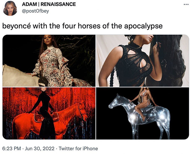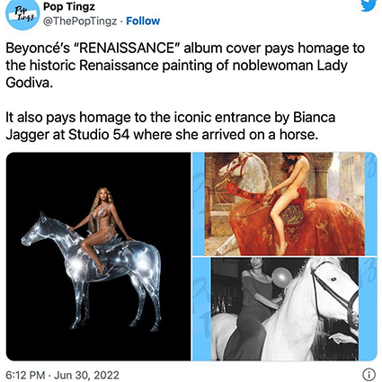 Բեյոնսեն Instagram-ում հրապարակել է իր երկար սպասված նոր ալբոմի՝ “Renaissance”-ի շապիկը, որը լույս կտեսնի հուլիսի 29-ին. համացանցը բառի բուն իմաստով պայթեցրել է կիսամերկ երգչուհու լուսանկարը, ով պատկերված է ձիու վրա: