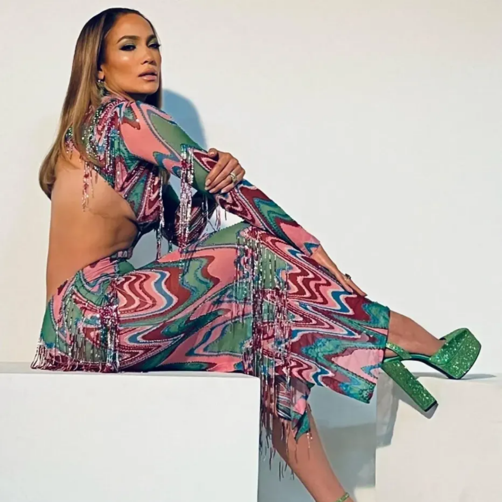 J. Lo-ի հավաքածուի մեջ գերակշռում են վառ գույների զգեստները՝ ծոպերի առատությամբ, գունավոր պրինտներով, փետուրներով, և այլ դեկորներով, ինչպես նաև բարձրակրունկ կոշիկներով: