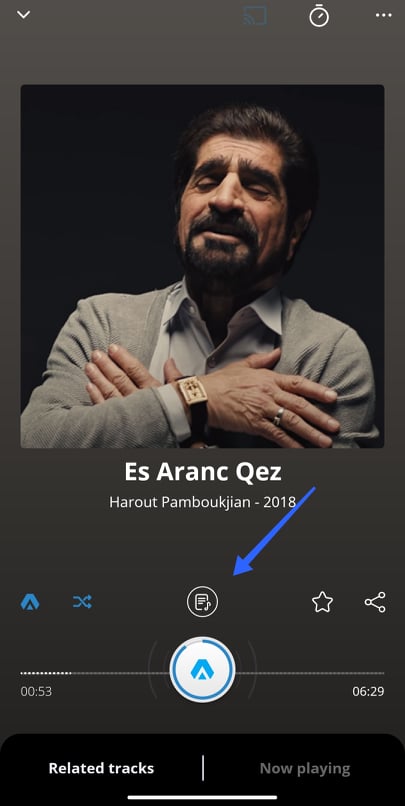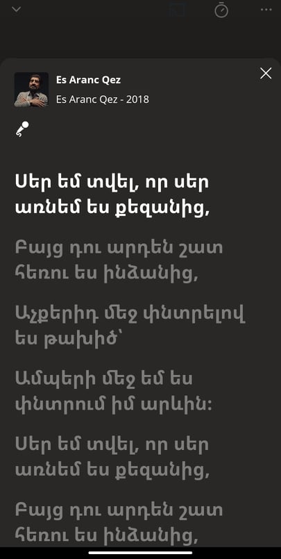 Երգի հուզիչ խոսքերը կարող եք գտնել IMUSIC հավելվածում։ Ստորև ներկայացրած սքրինշոթում կարող եք տեսնել, թե ինչպես է հնարավոր տեսնել երգի խոսքերը։