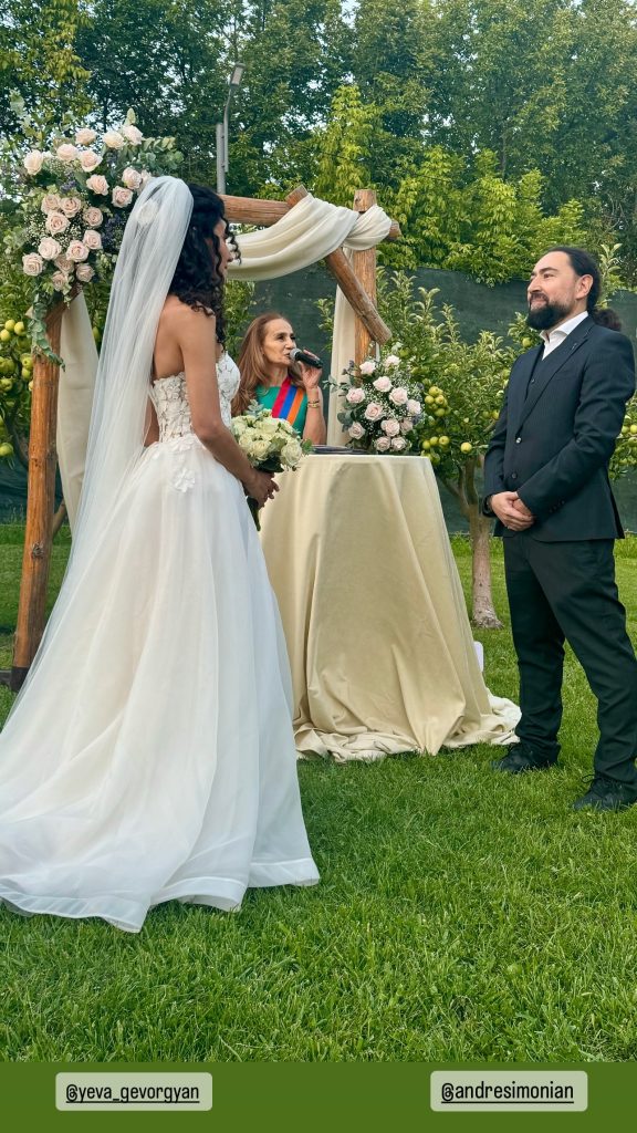 Ամուսնացել է The Beautified Project բենդի ֆրոնթմեն Անդրե Սիմոնյանը: Երաժշտի ընտրյալը կոնտրաբասահարուհի Եվա Գևորգյանն է: Անդրեի ու Եվայի հարսանեկան միջոցառմանը ներկա էին Իվետա Մուկուչյանը, Սոնա Ռուբենյանը, Ladaniva-ի Ժակլինը, Հայկ Պետրոսյանը, Արսեն Սևակ Ամրոյանն ու այլք: