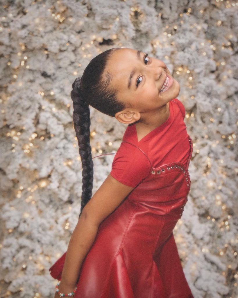 Իհարկե, ողջ ընտանիքը հագնված էր նույն ոճով. Ինքը՝ Քիմը և նրա կրտսեր դուստրը՝ վեցամյա Չիկագոն, կարմիր էին կրում, իսկ իննամյա Սեյնթը և հինգամյա Փսալմը սև էին հագել։ 11-ամյա Նորթը նկարահանման համար ընտրել էր սպիտակ կորսետ՝ սև փողկապով, ինչպես նաև՝ սև բաճկոն, մինի կիսաշրջազգեստ և մորթյա երկարաճիտ կոշիկներ։