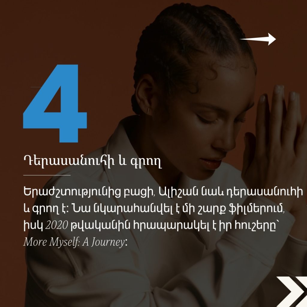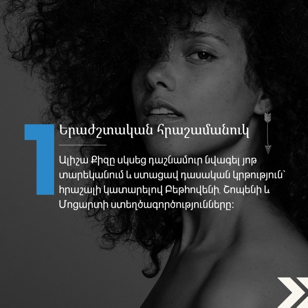 Հունվարի 25-ին ամենասիրված երգչուհիներից մեկը՝ Ալիշա Քիզը 44 տարեկան է դառնում: Այս առիթով ներկայացնում ենք 5 հետաքրքիր փաստ երգչուհու մասին: